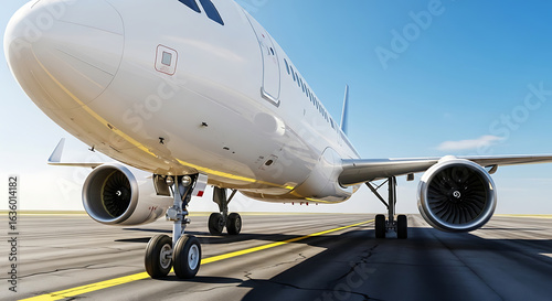 © Faris, Obraz premium Passenger Airplane on Runway Front View Closeup.