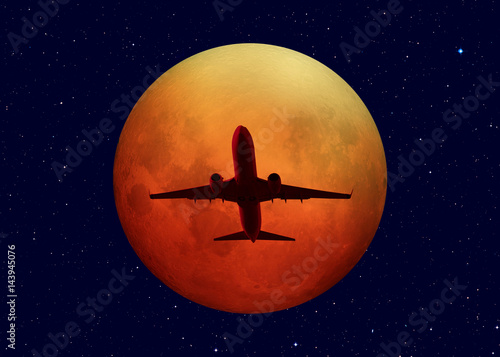 Naklejka premium Passenger airplane with lunar eclipse"Elements of this image furnished by NASA "