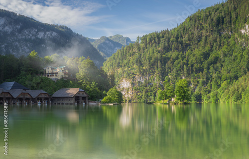 © boule1301, Fototapeta premium Passenger boat station, pier or dock on Konigsee lake in Berchtesgaden, Germany