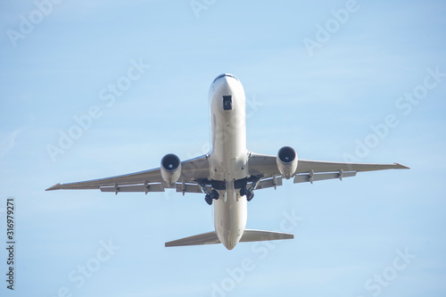 Fototapeta premium Passenger plane flying seen from below.