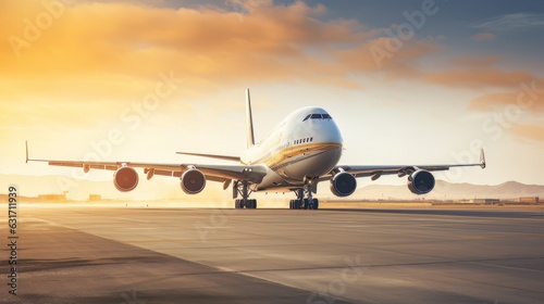 Fototapeta premium Passenger plane stands on the runway visualization AI