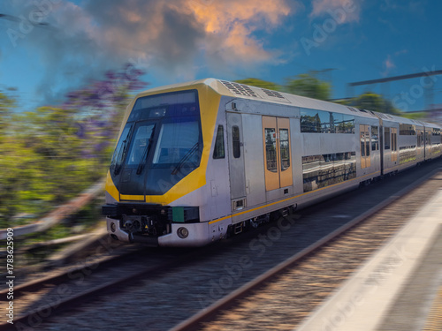 © Elias Bitar, Naklejka premium Passenger Train going through Summer Hill train station a suburban Sydney train Station NSW Australia