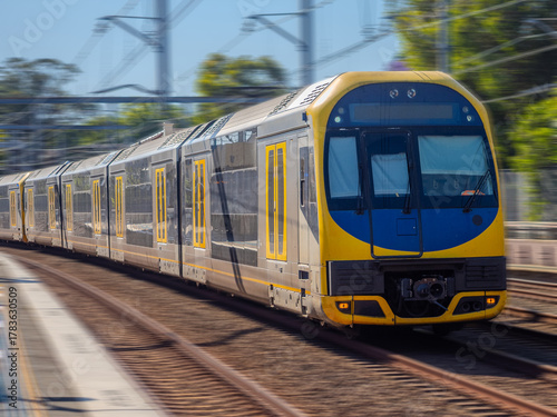 Naklejka premium Passenger Train going through Summer Hill train station a suburban Sydney train Station NSW Australia