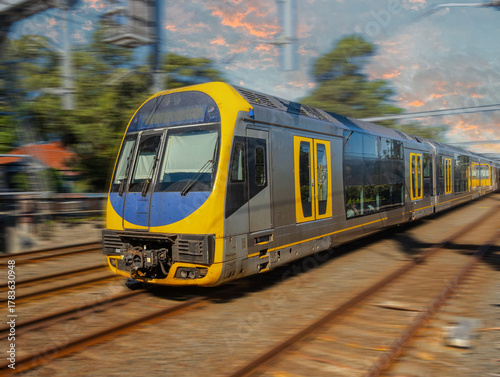 © Elias Bitar, Naklejka premium Passenger Train going through Summer Hill train station a suburban Sydney train Station NSW Australia