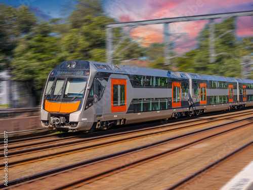 © Elias Bitar, Fototapeta premium Passenger Train going through Summer Hill train station a suburban Sydney train Station NSW Australia