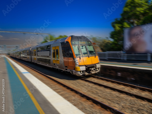 Naklejka premium Passenger Train going through Summer Hill train station a suburban Sydney train Station NSW Australia
