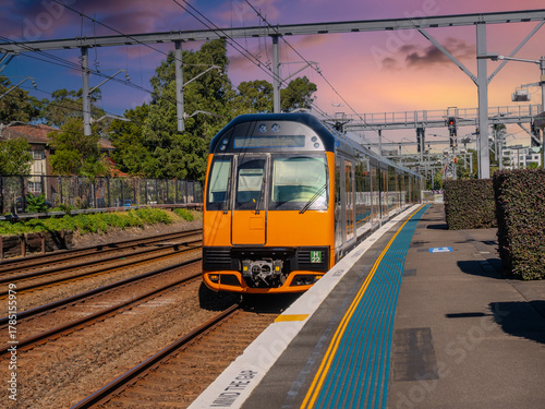 © Elias Bitar, Naklejka premium Passenger Train going through Summer Hill train station a suburban Sydney train Station NSW Australia