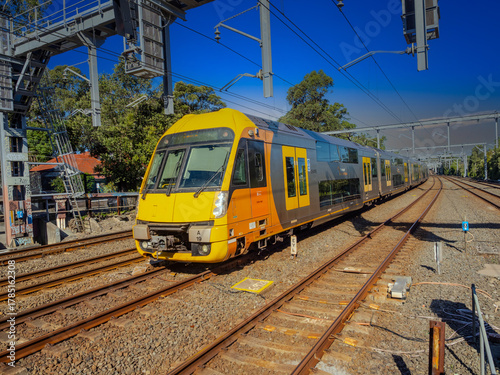 © Elias Bitar, Fototapeta premium Passenger Train going through Summer Hill train station a suburban Sydney train Station NSW Australia