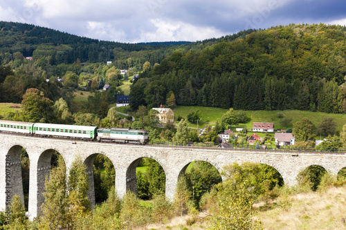 Fototapeta premium passenger train on viaduct Novina, Krystofovo Valley, Czech Repu