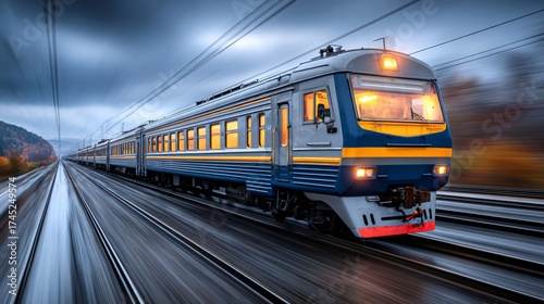 Naklejka premium Passenger train traveling fast on railway tracks