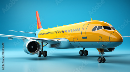 Fototapeta premium Passenger yellow airplane on dark blue background