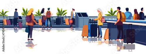 Fototapeta premium passengers with luggage in arrival waiting room or departure lounge international airport terminal interior horizontal