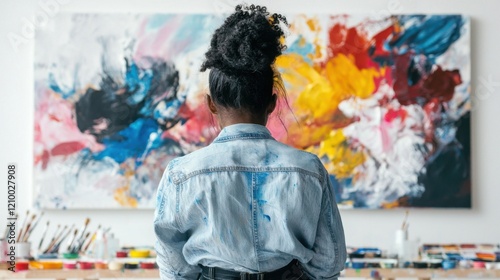 Fototapeta premium Passionate Embracing Colorful Expression on Canvas in Studio