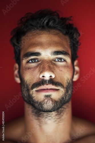 © Alex, Fototapeta premium Passionate Man Portrait Against Red Backdrop Generative AI