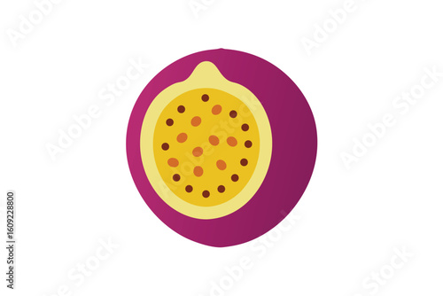 © dj, Fototapeta premium Passionfruit Cut In Half Showing Seeds White Background