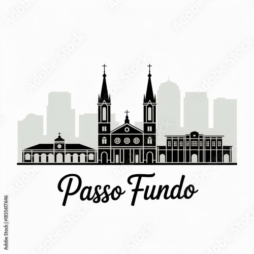 Obraz premium Passo Fundo Skyline Silhouette — Northern Cultural & Medical Hub of Rio Grande do Sul Brazil Vector Illustration