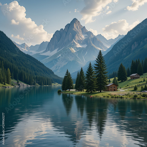 © Sara, Fototapeta premium passo primollo,lago,montagna,albero,camper,carniche,alba,