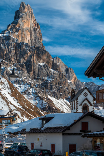 © Nicola Simeoni, Fototapeta premium Passo Rolle and the Pale di San Martino. Dolomites in winter.