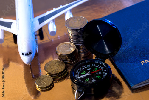 © RomanR, Fototapeta premium passport preparation for air travel - close up