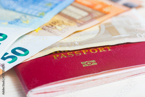 © Igor Kapustin, Obraz premium Passport with Euro banknotes
