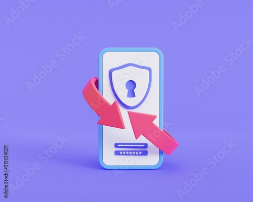 Fototapeta premium Password change icon. Notification. Security message. Save data on phone. 3d illustration