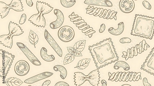 © Mst, Obraz premium Pasta Assortment Sketch