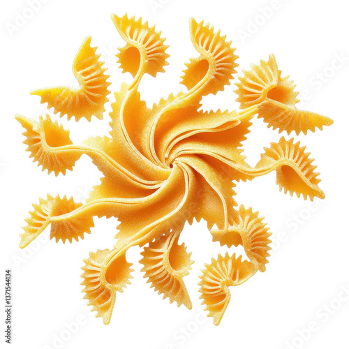 © Cheewarat, Fototapeta premium Pasta Sunburst: A creative arrangement of pasta, forming a sunburst pattern, showcasing the beauty and versatility of Italian cuisine.