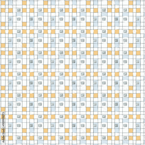 Fototapeta premium Pastel Blue and Orange Grid Pattern: Hand-Drawn Seamless Texture...