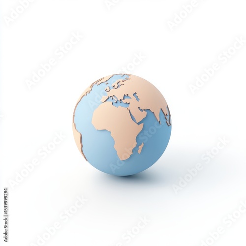 © Rungtiwa, Fototapeta premium Pastel Blue and Peach 3D Rendered Globe on White Background