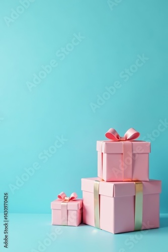 © chanwut, Obraz premium Pastel blue background with stacked gift boxes, holiday surprise, holiday, gift
