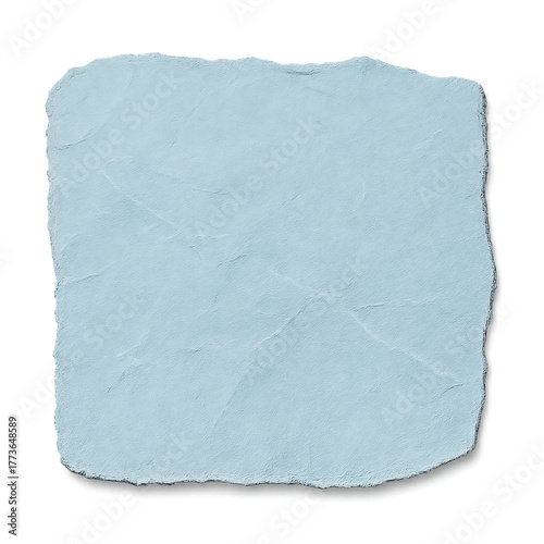 © LocalEvent, Obraz premium Pastel Blue Folded Paper Fragment with Scratched Texture and Irregular Edges on Transparent Background