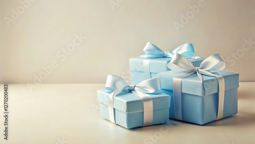 Obraz premium Pastel blue gift boxes with elegant ribbon bows arranged on a smooth surface