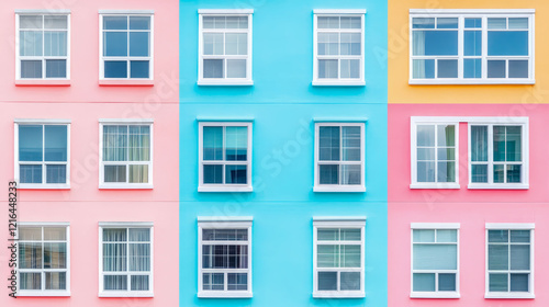Fototapeta premium Pastel Building Facade with Symmetrical Windows