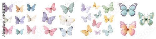 © Naruedetch, Obraz premium Pastel Butterfly Collection Isolated on White Background - Stock Image