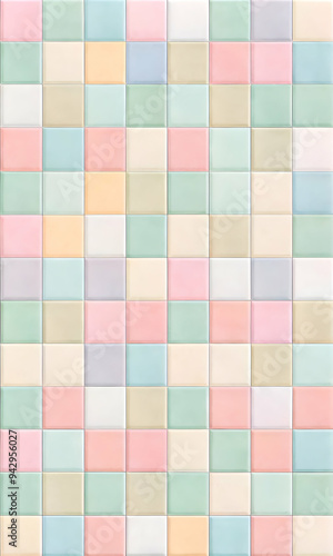 © Joesunt, Fototapeta premium Pastel Checkerboard Chic: A seamless pattern of soft pink, blue, and yellow squares forms a delightful and versatile background.