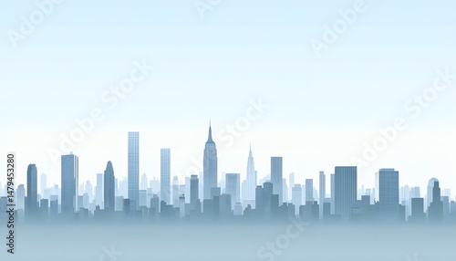 © Farid, Naklejka premium Pastel cityscape silhouette on a hazy day.