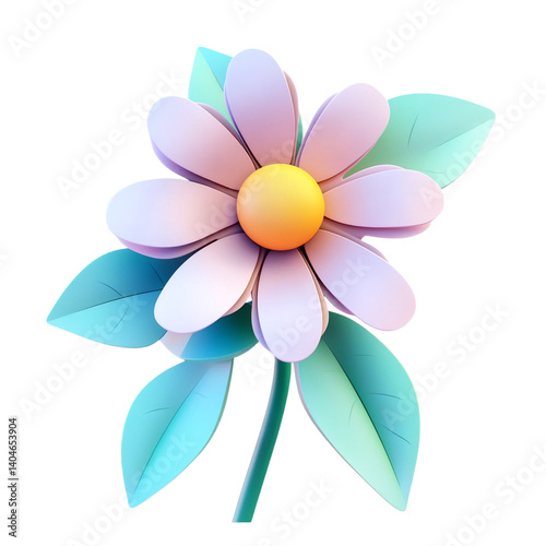 © Audrey, Fototapeta premium Pastel color 3D cartoon cute flower on a white background. AI-Generated.