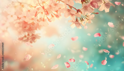 © Sagar, Obraz premium pastel colored background with falling petals, blurred background