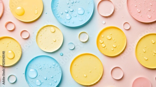 Fototapeta premium Pastel Colored Circles With Water Droplets Abstract Design