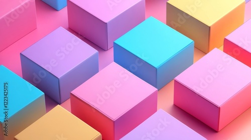 Obraz premium Pastel Colored Cubes Abstract Geometric Background Modern Design Digital Art...
