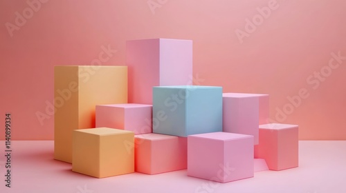 Fototapeta premium Pastel Colored Cubes Abstract Minimalist Composition