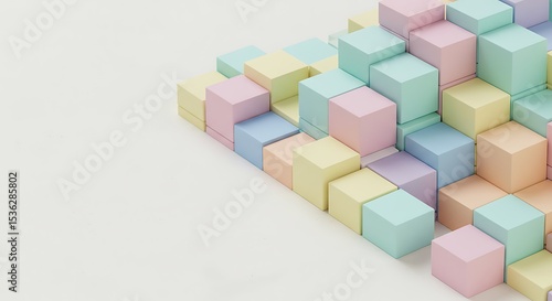 © Syartinolky | Pixels, Obraz premium Pastel Colored Cubes Arranged in a Geometric Pattern on White Background