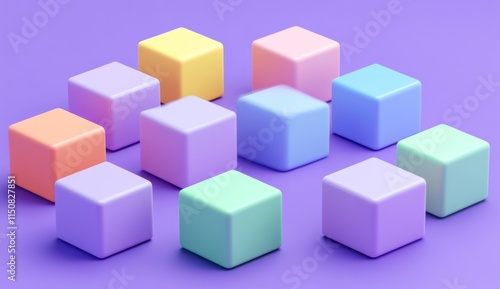 © Alfath, Fototapeta premium Pastel colored cubes arranged on purple background.