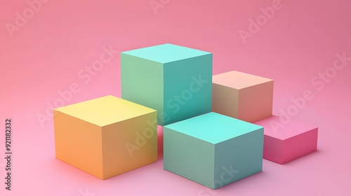 © duyina1990, Obraz premium Pastel Colored Cubes 3D Rendering Abstract Background