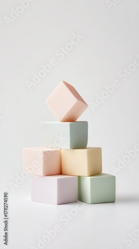 © Generative Media Lab, Obraz premium Pastel colored cubes stacked