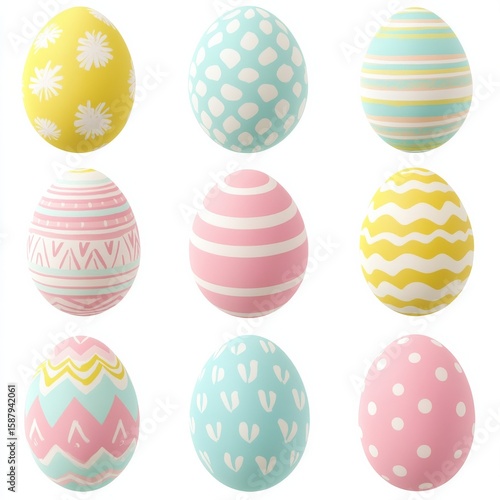 © Spot Decor, Fototapeta premium Pastel Colored Easter Eggs with Patterns, Easter , Eggs