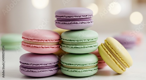 © Digital Arts, Obraz premium Pastel-colored macarons on white background