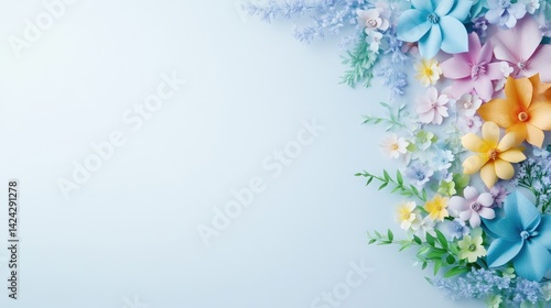 Fototapeta premium Pastel colored paper flowers in a light blue background