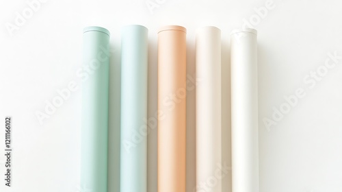 Obraz premium Pastel Colored Paper Rolls Arranged Vertically