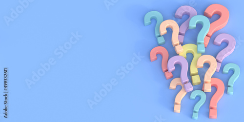 Obraz premium Pastel colored question marks on a blue background
